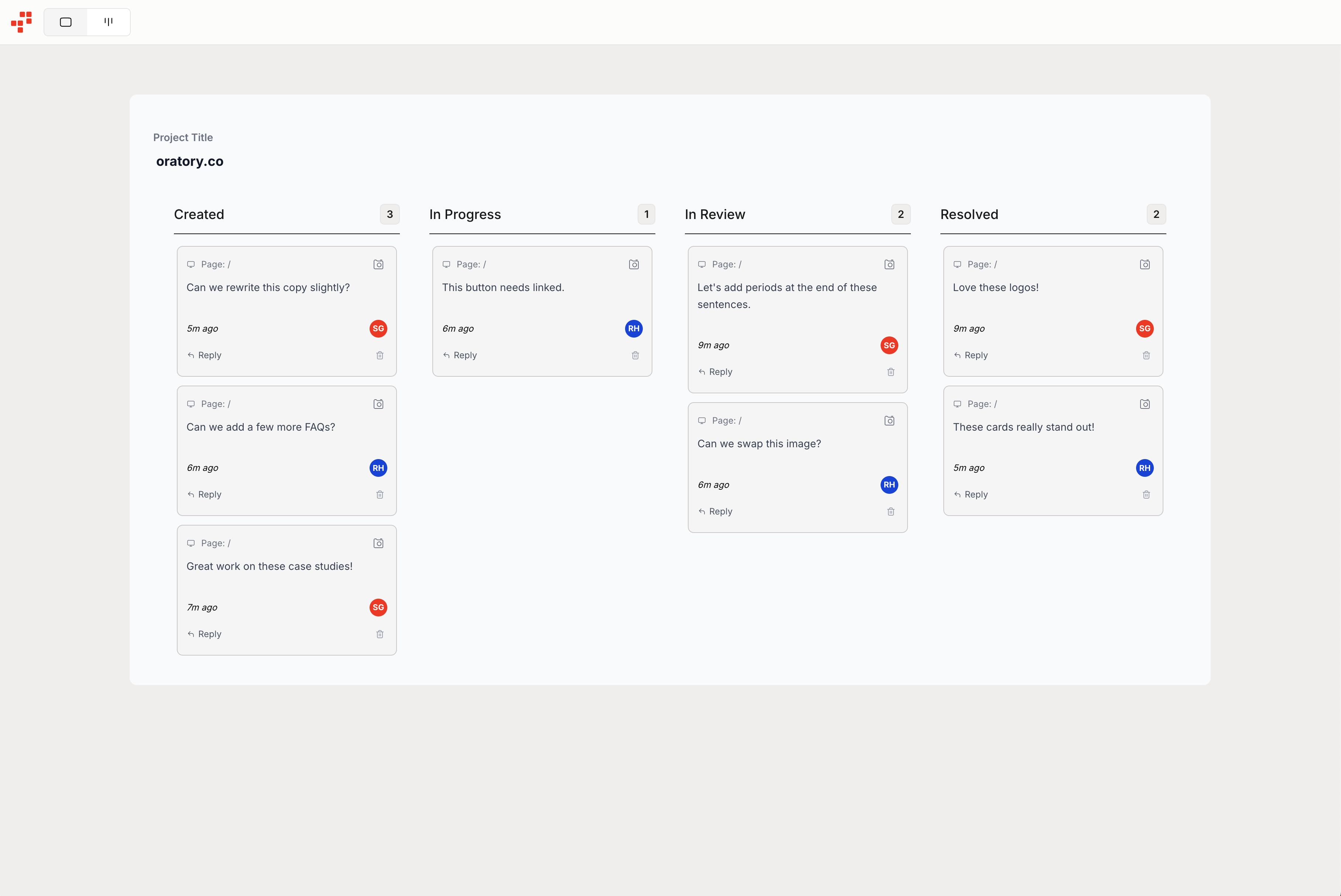 See every website comment as a card, every status as a column. Our Kanban covers the essentials for project management that makes website QA feel organized, collaborative, and actually manageable.